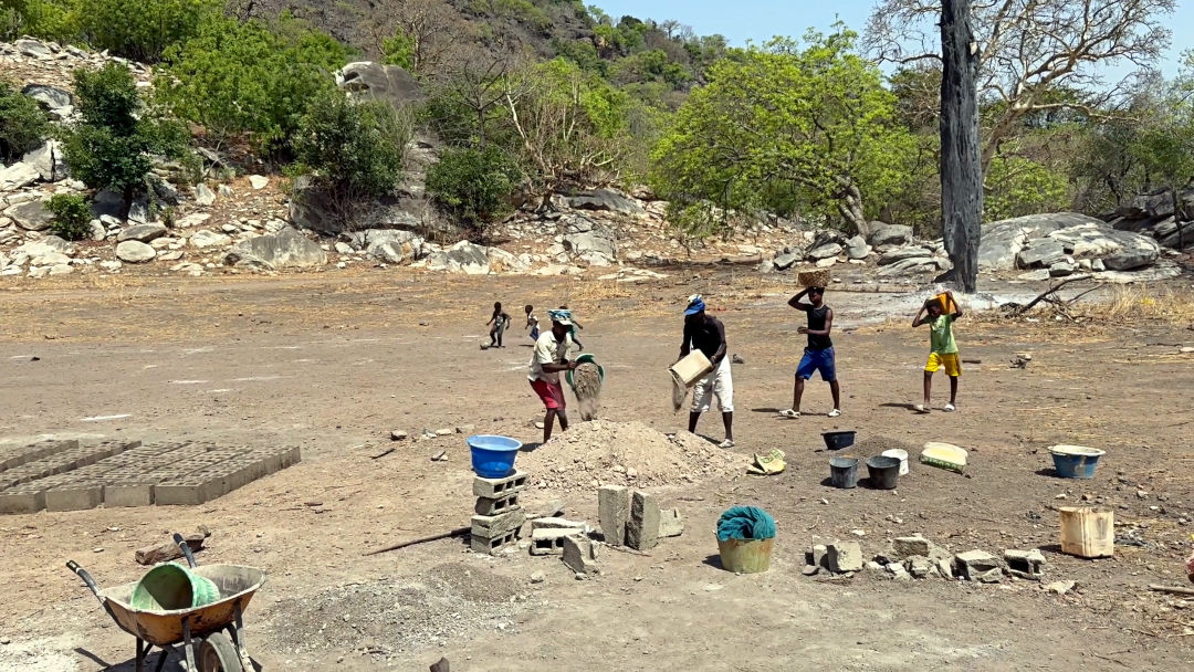 Les travaux ont été plus long que prévu car l'acheminement des matériaux sur la colline par les villageois a été compliqué. De plus, des pluies importantes (et précoces cette année) ont ralenti la construction.