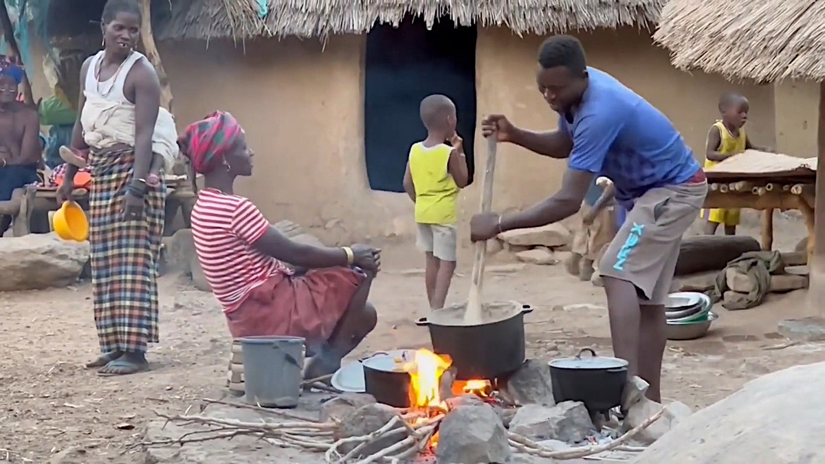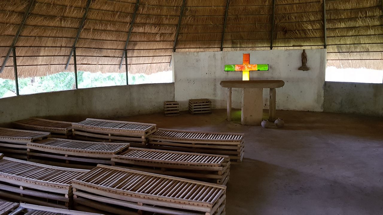 Le village est constitué de cases rudimentaires au toit fait de bambou et de paille, et au mur circulaire fabriqué avec de la terre argilée mélangée à de l’eau. Même l’église est construite ainsi.