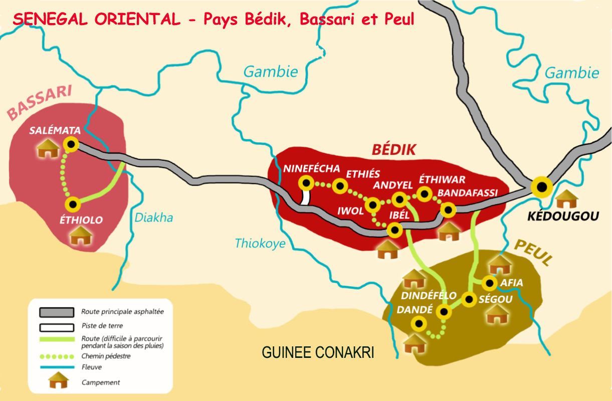 Il est situé près de Iwol, considéré comme la "capitale" du pays Bédik au Sénégal oriental.